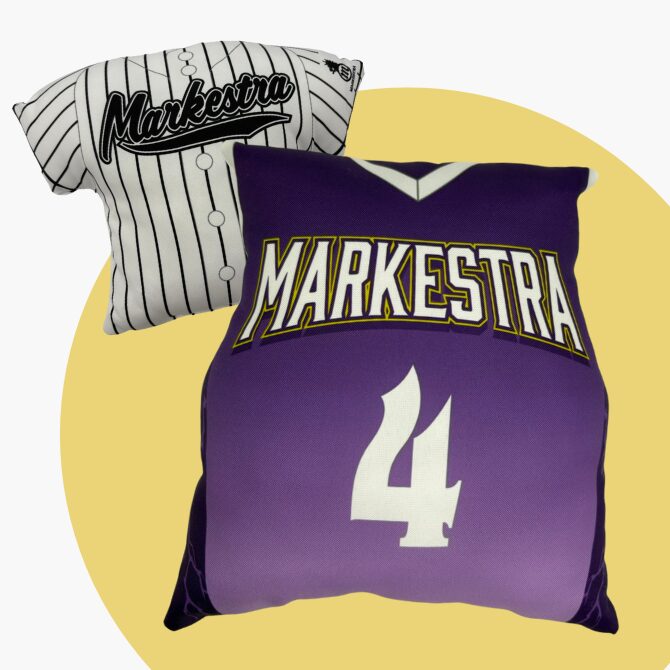 チームのユニフォームを模した手のひらサイズのクッションが作成できます。